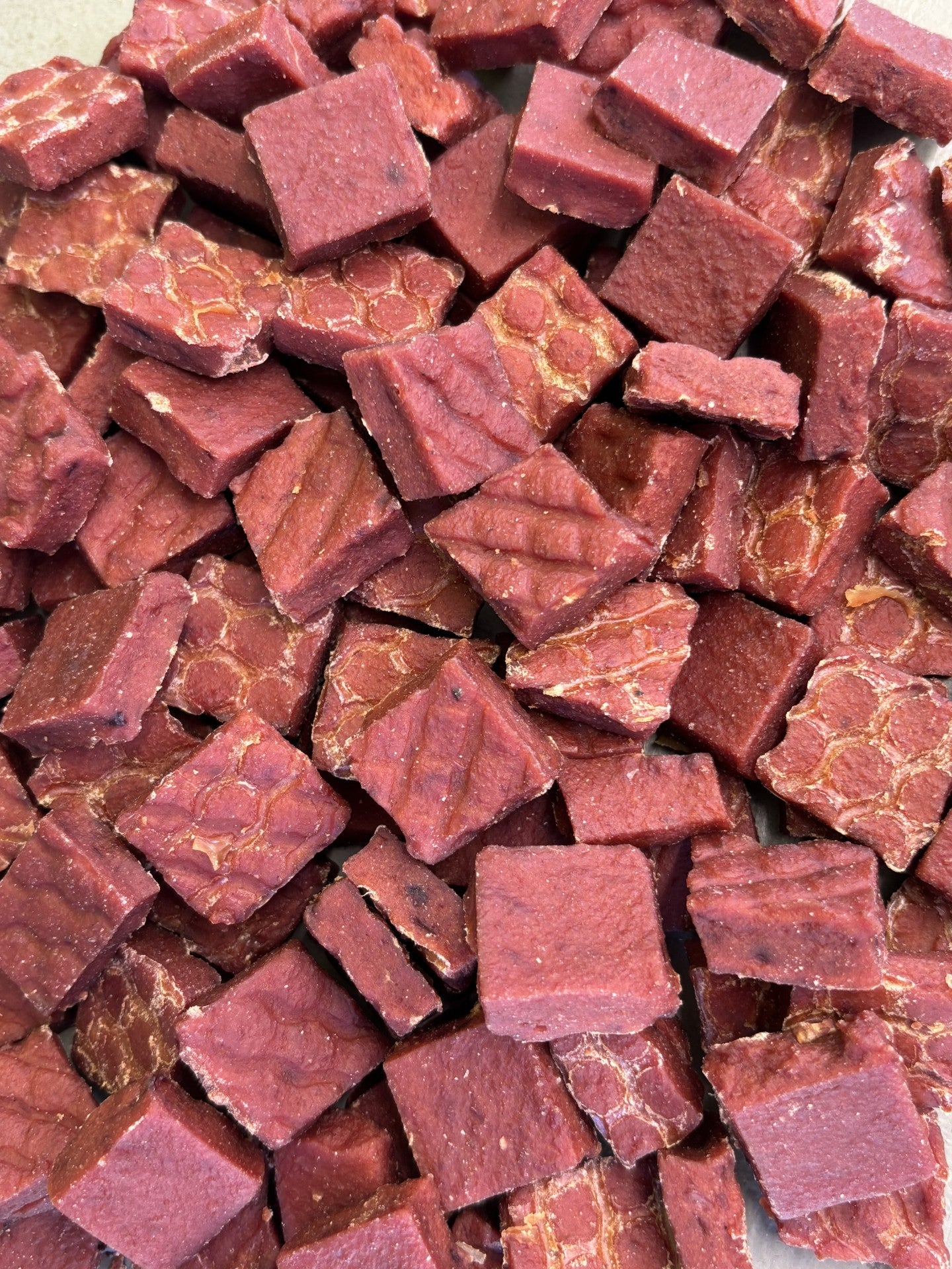 Tasty squares of Beef and Beef Heart, these treats are the perfect size for training and enrichment!